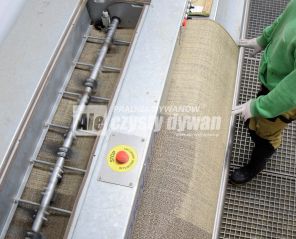 - PRANIE WŁAŚCIWE – pranie dywanu jedynym w Polsce automatem pralniczym (natrysk o odpowiednim ciśnieniu, szorowanie).